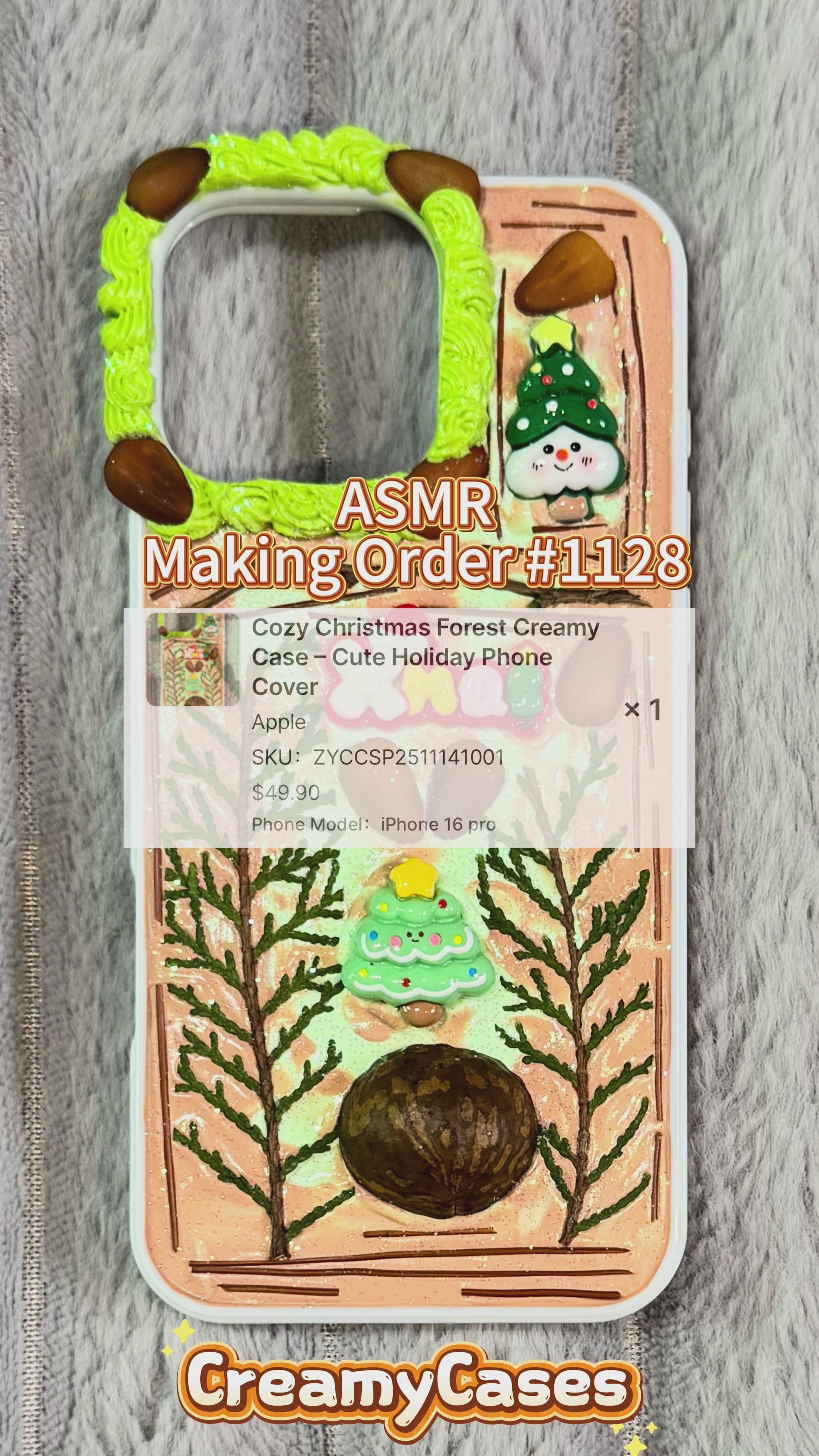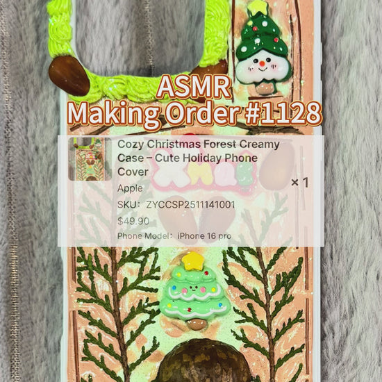 Bring the magic of a cozy winter cabin to your phone. This handmade creamy-style Christmas case features a whimsical holiday tree, sparkling pastel frosting textures, and adorable festive charms. Natural forest elements, acorns, and warm gingerbread tones create a dreamlike woodland vibe. Each piece is uniquely crafted, offering a soft, fantasy aesthetic perfect for holiday lovers and collectors of kawaii, dreamy décor. Lightweight yet protective, it turns your phone into a magical winter tale you can hold in your hand.