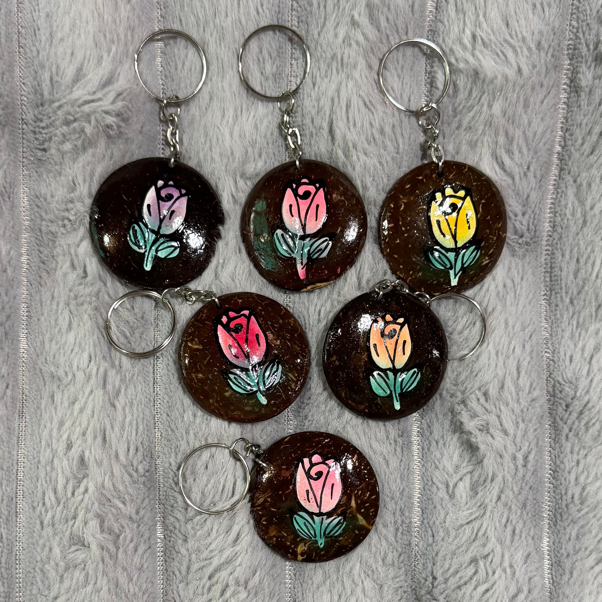 Add a touch of nature to your daily essentials with these charming hand-painted coconut shell keychains. Each keychain features a unique, vibrant flower design, carefully crafted with love and creativity. Made from eco-friendly coconut shells, these keychains are perfect for adding a pop of color to your keys, bags, or any accessory. Lightweight and durable, they make an excellent gift or personal treat for flower lovers and eco-conscious shoppers.