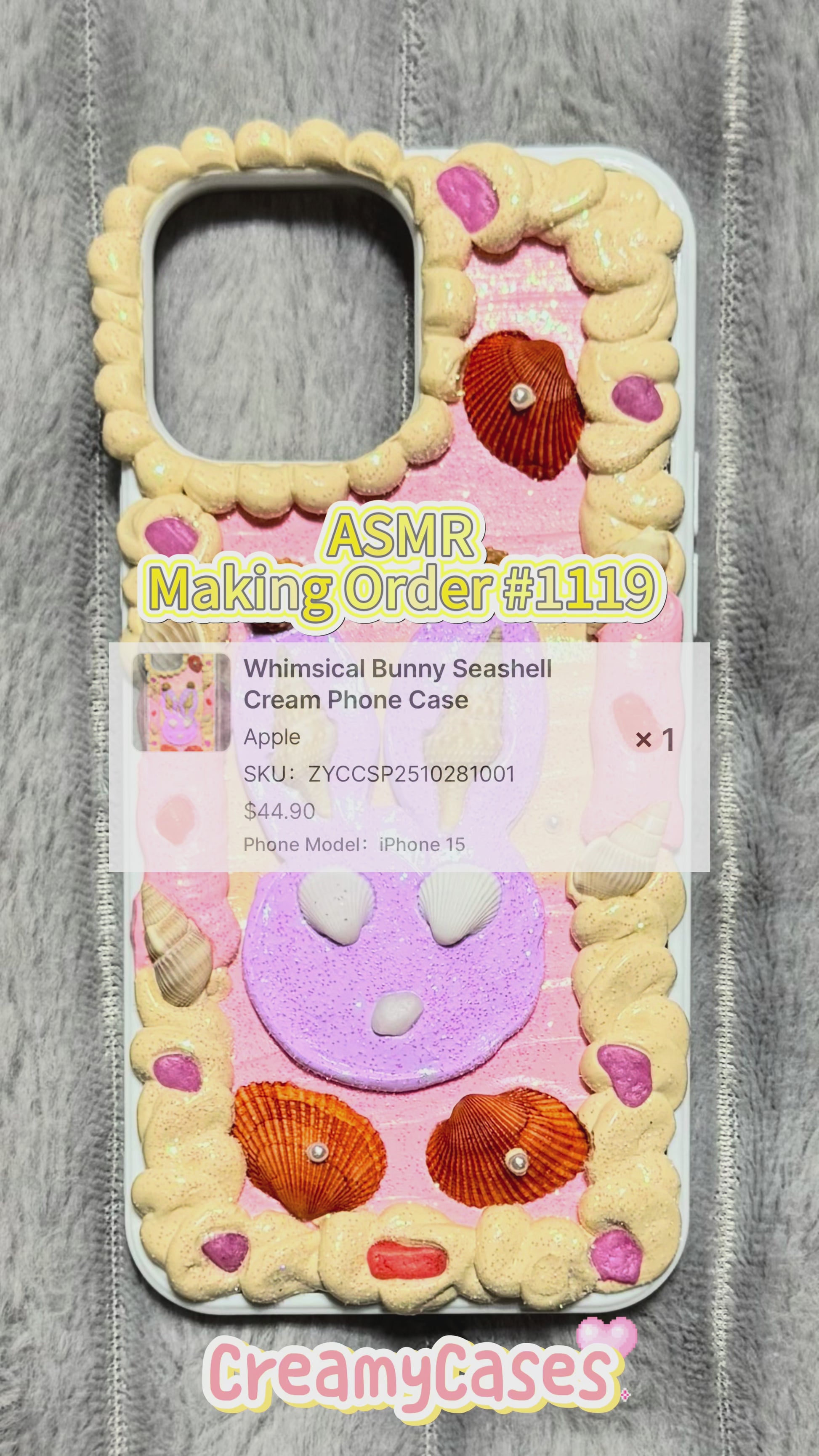 Dive into dreamy cuteness with this handmade bunny seashell phone case! 🐰💜