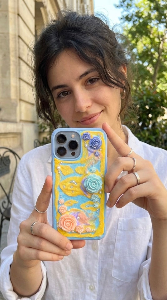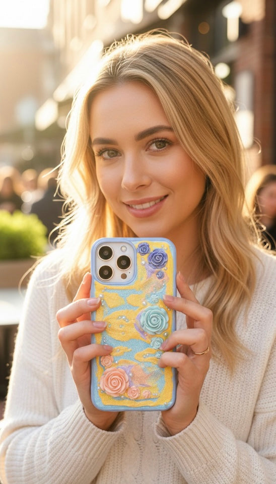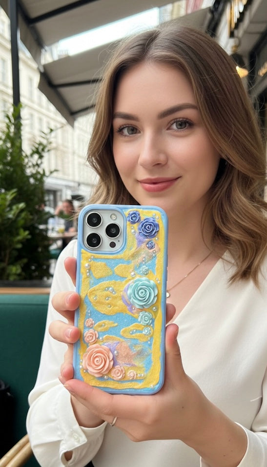 - Artisan Craftsmanship: Each case features hand-piped "cream" textures layered with vibrant yellow and blue glitter swirls, ensuring your phone stands out in any crowd.