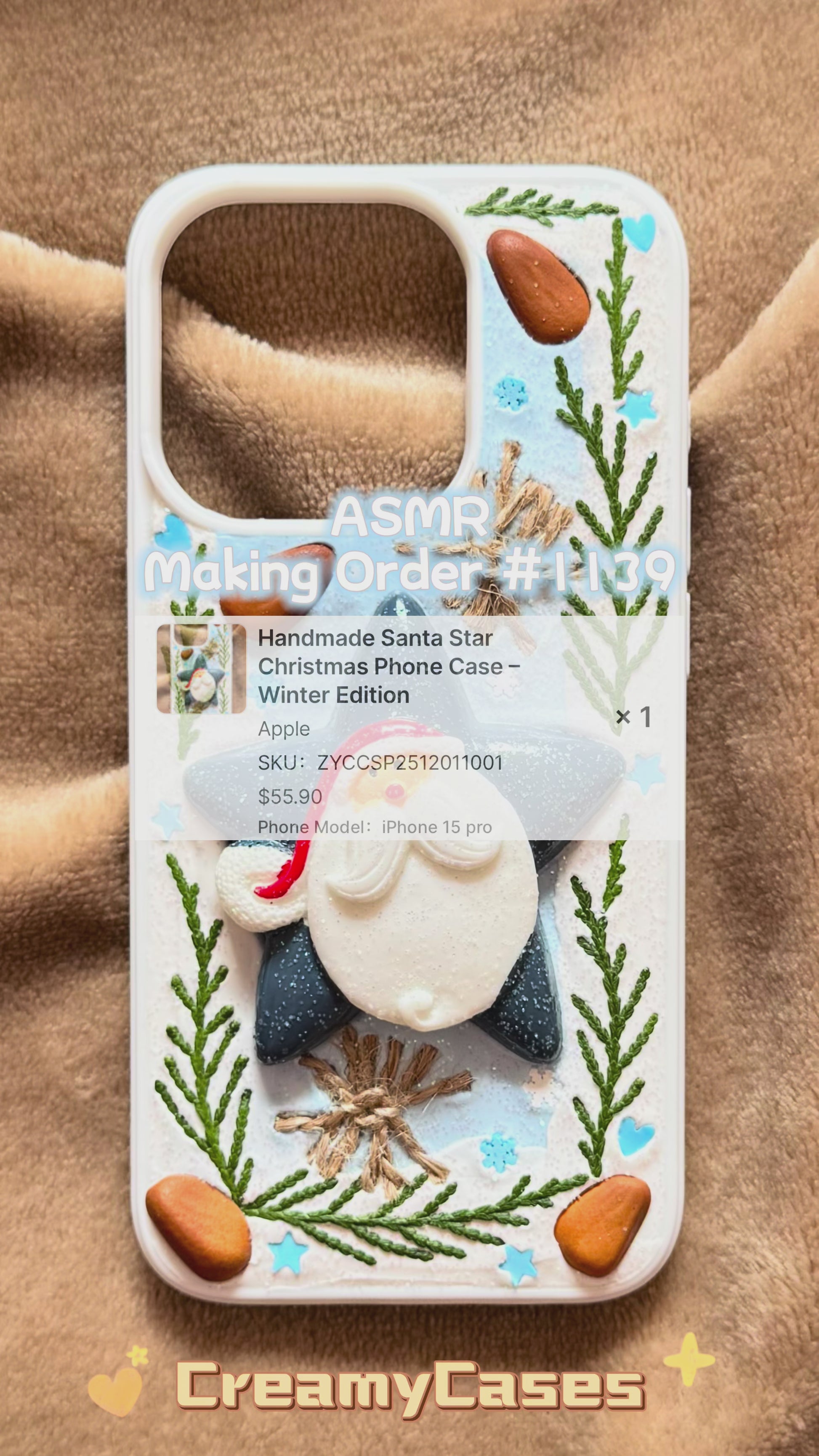 Bring cozy holiday magic to your phone with this handmade Christmas phone case, featuring a cute Santa on a frosty star, pine branches, snowflakes and natural nut details. Each piece is carefully crafted with 3D cream art for a unique, textured look. Perfect for the festive season and an unforgettable Christmas gift for yourself or someone special.