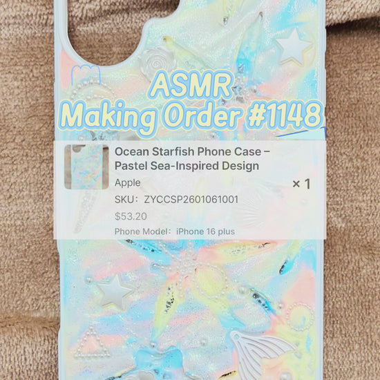 This ocean-inspired phone case features a central starfish imprint, surrounded by soft pastel waves in blue, yellow, and blush tones. Delicate sea elements like shells, pearls, and star details create a dreamy, underwater feel.