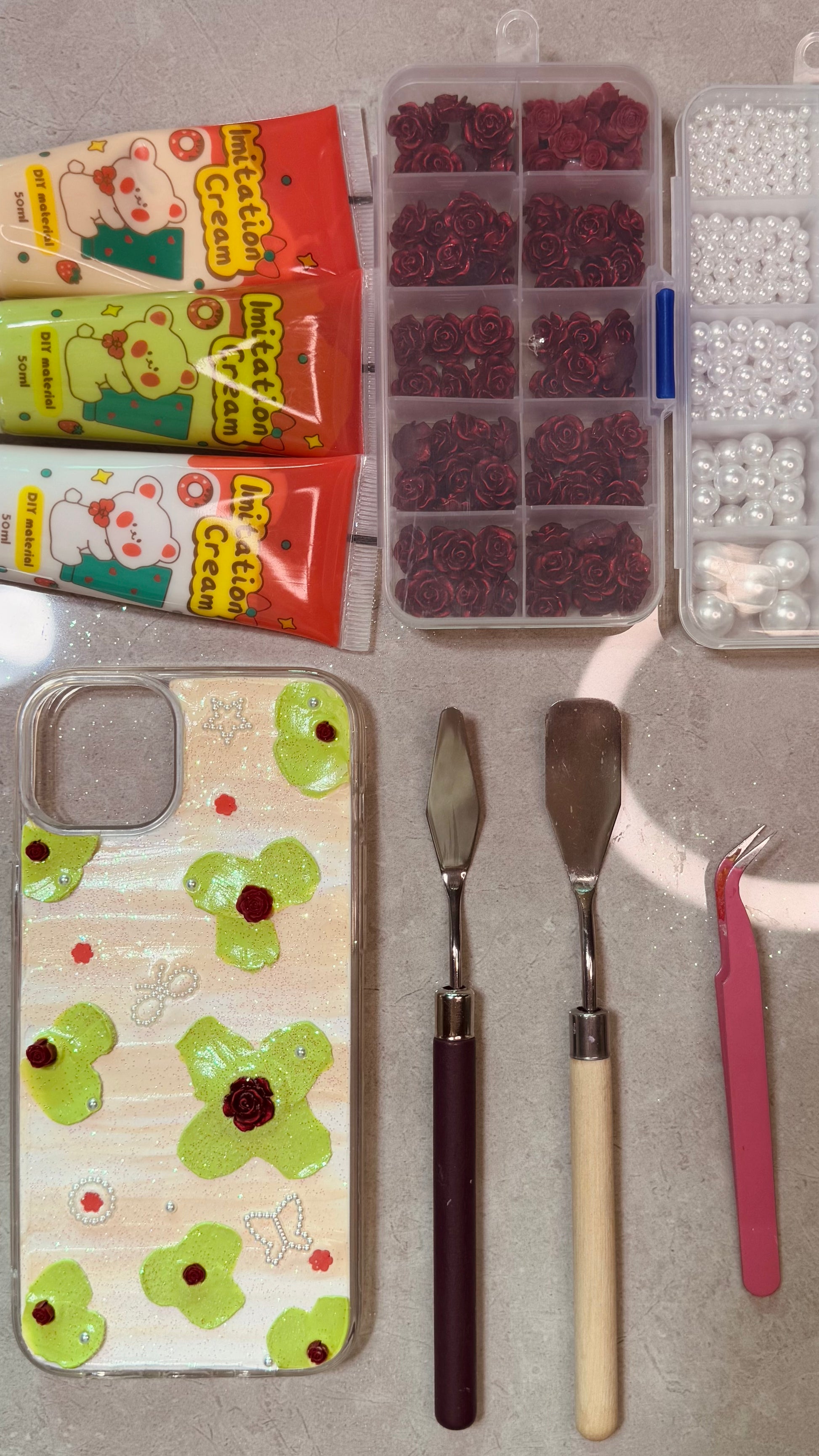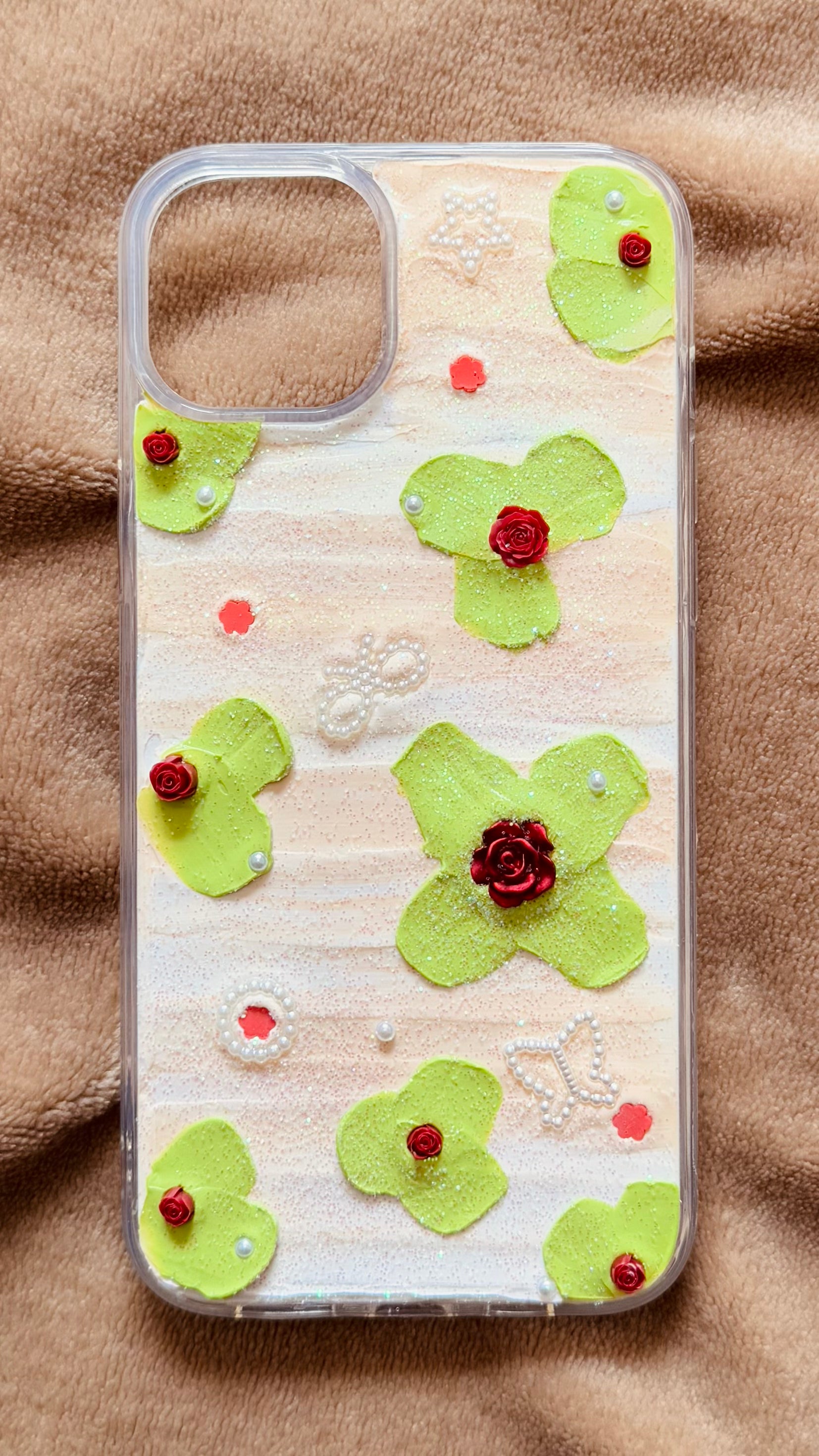 Matcha Rose & Pearls: Romantic Handmade Decoden Case